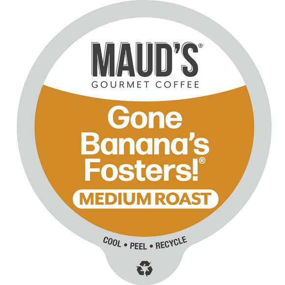 Maud's "Gone Banana's Foster!" Banana Flavored Medium Roast Coffee Pods have subtle notes of bananas and vanilla ice cream, topped with buttery brown sugar, cinnamon and dark rum.